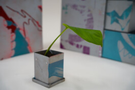 Ein schnelles Projekt in dem Recycelt und ausprobiert wurde... Offsetbleche aus dem Abfall der Druckerei genietet zu Ablagen, Schränkchen und einem Blumentopf.